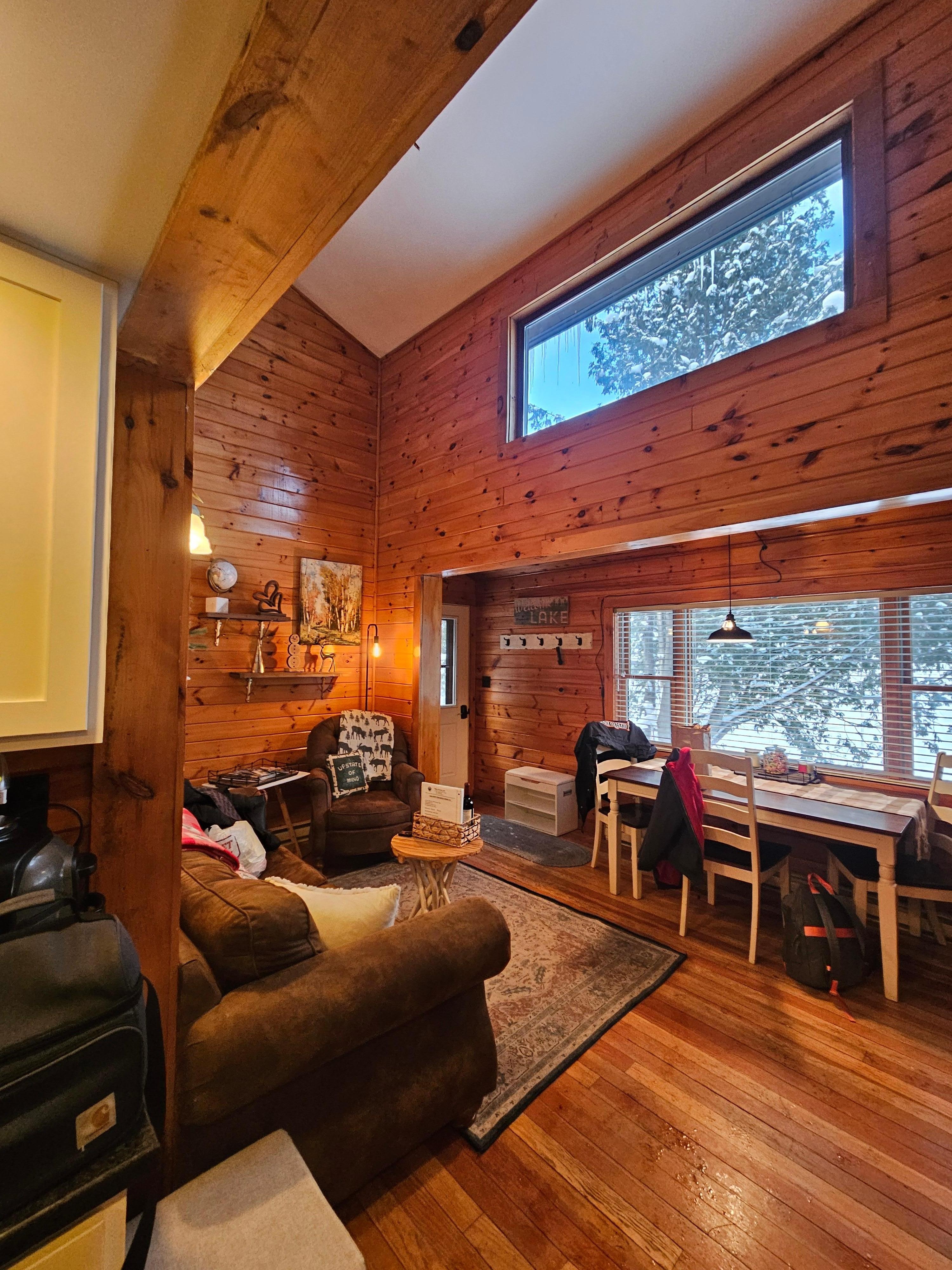 Enjoy a renovated interior, rustic furnishings, and a location just steps from the water at this idyllic vacation rental in Saranac Lake. With enough space for the family and your furry friend, this 2-bedroom, 1-bath cabin has all the ambiance and amenities needed for a tranquil stay in the Adirondack Mountains. Spend the day hiking, kayaking, fishing, or skiing with loved ones, then retreat home to cozy up by the fireplace, play a game, or snuggle up and watch a movie in the loft.