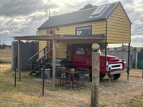 Only a 20-minute drive to Mudgee and surrounded by the region's best vineyards, Tiny Truck at Ithaca offers a real country escape with an unforgettable twist. Built on an intact original 1957 International Harvester dual-wheel farm truck, the cosy stay offers a lofted queen bed, full-bathroom and kitchenette. With an undercover outdoor area looking out over the paddocks and rolling hillsâyou can cosy up around the fire pit under the stars or fire up the BBQ and watch the sheep and alpaca graze.