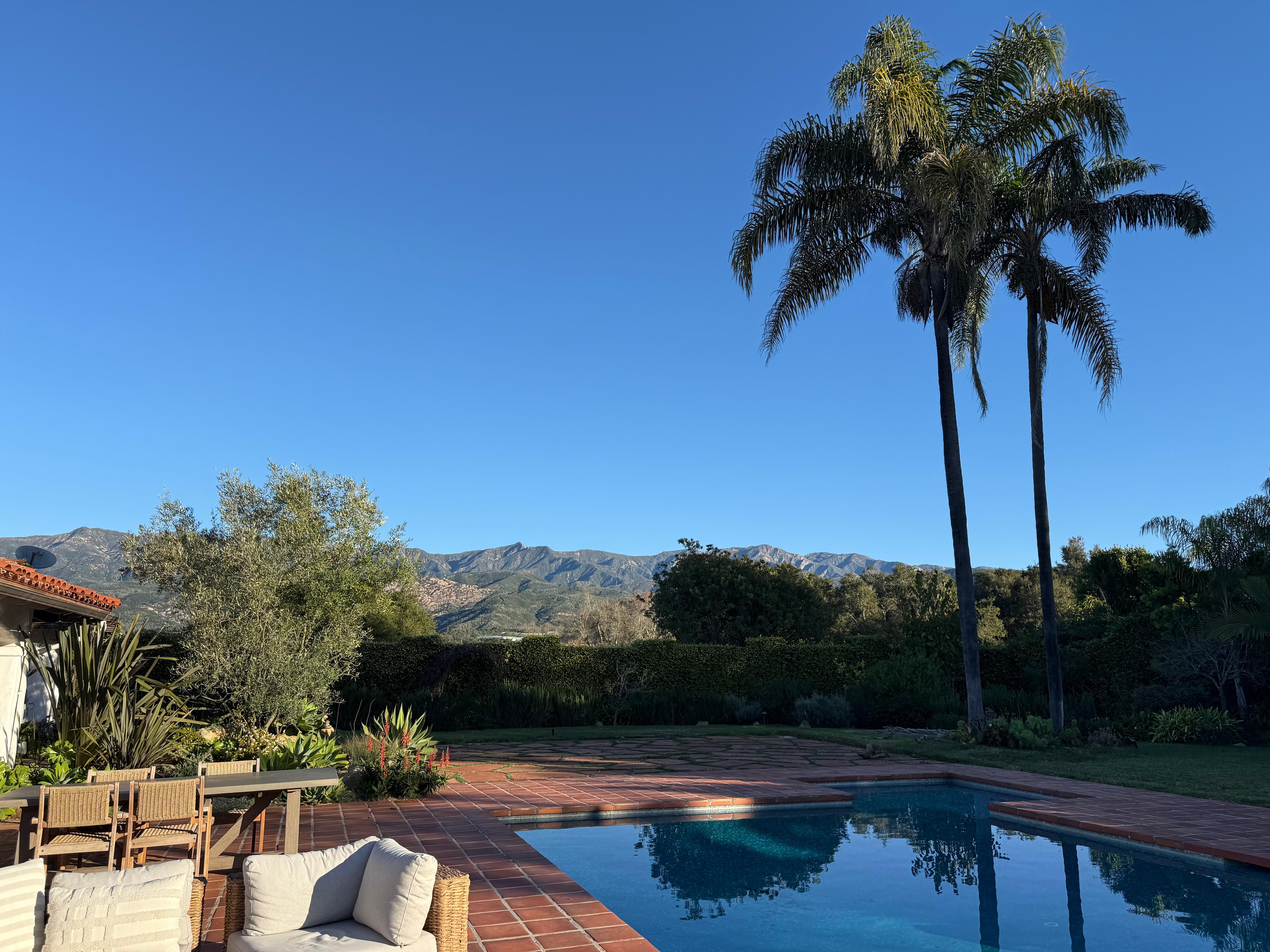 The peaceful sound of wind chimes, chirping birds, and the trickle of the fountain evoke a sense of pure serenity at this classical coastal Californian home located just five minutes from the Carpinteria Bluffs Nature Preserve and the Seal Sanctuary. A blend of Moroccan and Coastal California design creates a warm and inviting atmosphere with the large windows and french doors flooding the space with natural light. The four well appointed bedrooms and bathrooms are spacious and include luxury features such as an in-room fireplace, separate soaking tub and shower, and private access to the tranquil backyard. Outside, guests will enjoy a large heated swimming pool and basking under the California sun and the stunning views of the Santa Ynez Mountains. Explore the coastline while on the 1.5 mile walk to Rincon Point or the 5 min drive to watch surfers at the beach.