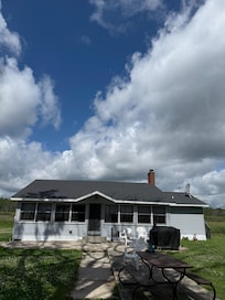 - Single-story cottage, steps to enter