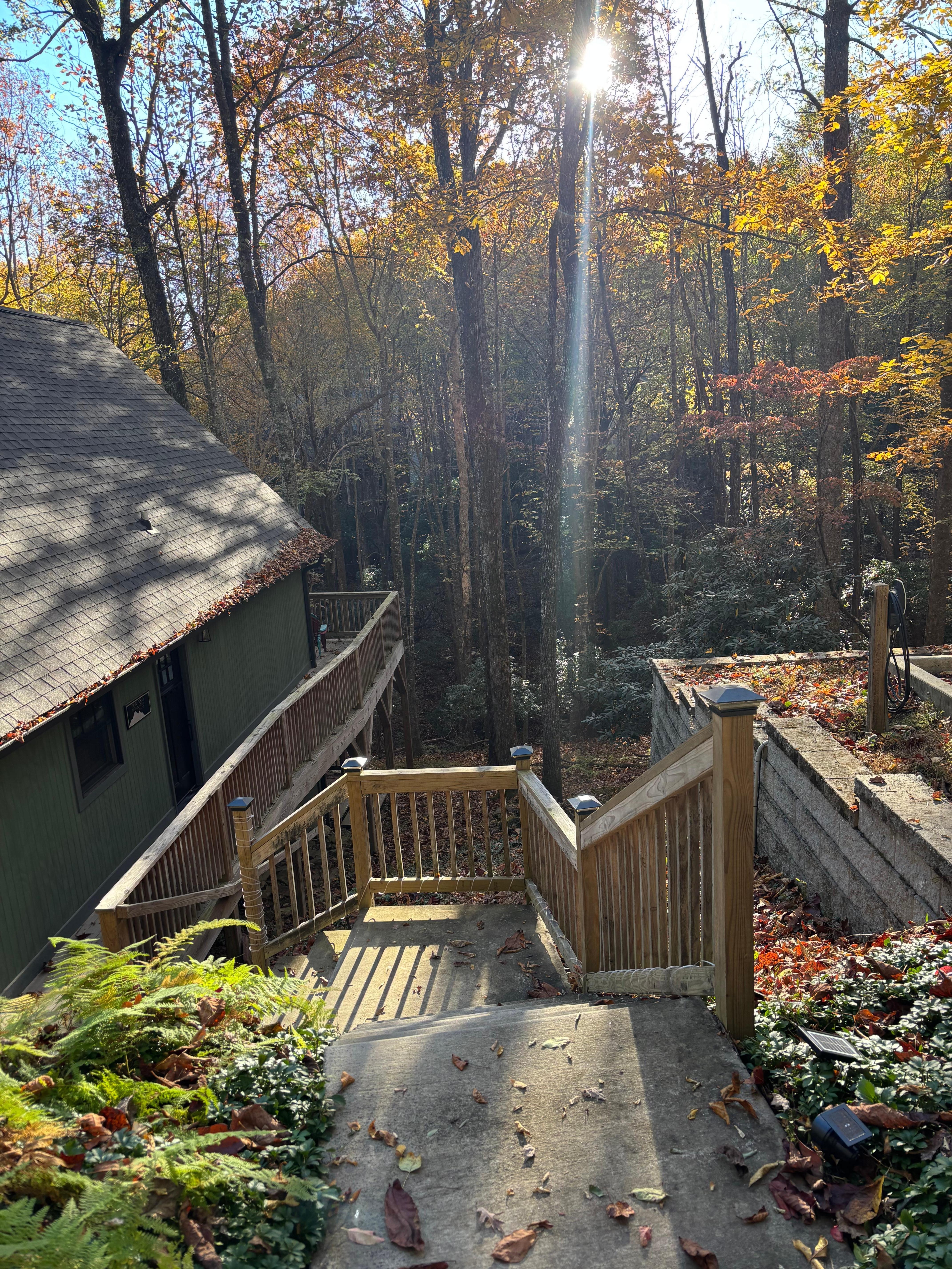 FAQ: Stairs required for access, quiet hours (after 10:00 PM), outdoor lights out (after 11:00 PM), pet fee (paid pre-trip)