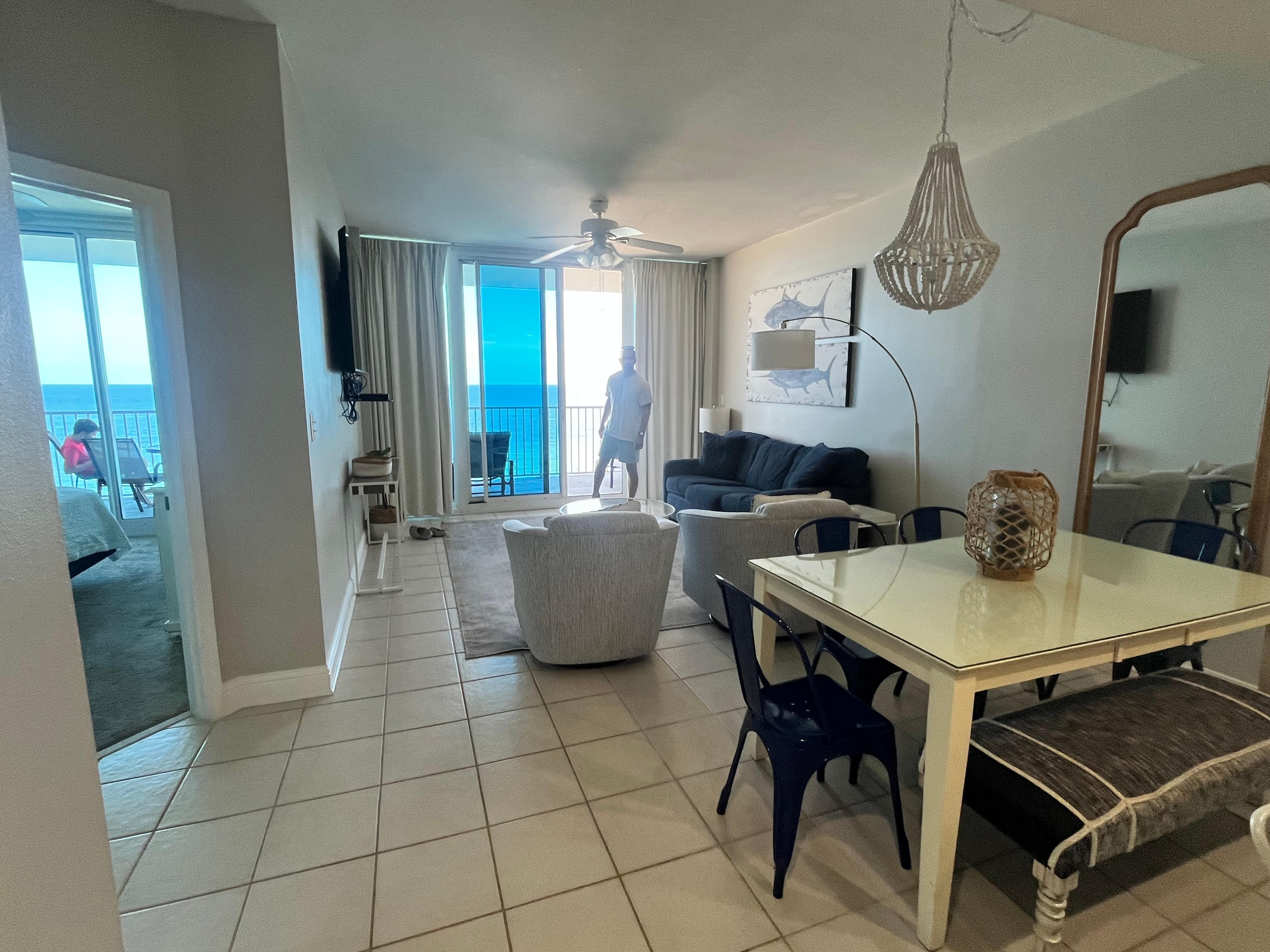 Le phare 911 est un condo de deux chambres et deux salles de bains joliment décoré avec vue sur le golfe du 9Úme étage.