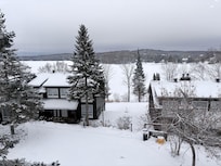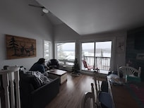 2 bed (sleeps 4: 1 double, 1 king), 1.5 bath, wood fireplace & spectacular views of Peninsula Lake & mountains. Many scenic trails and parks nearby (Arrowhead, Algonquin, & Limberlost Forest). Two balconies to relax on. Enjoy the beach, tennis & basketball courts, and outdoor pool: all next door at resort, including a bar/restaurant. Hidden Valley across the road has a variety of ski hills and we also have a hill for sledding out front! The area also has numerous places to visit, including shops, breweries, & restaurants in Huntsville. (No water equipment provided with the chalet)