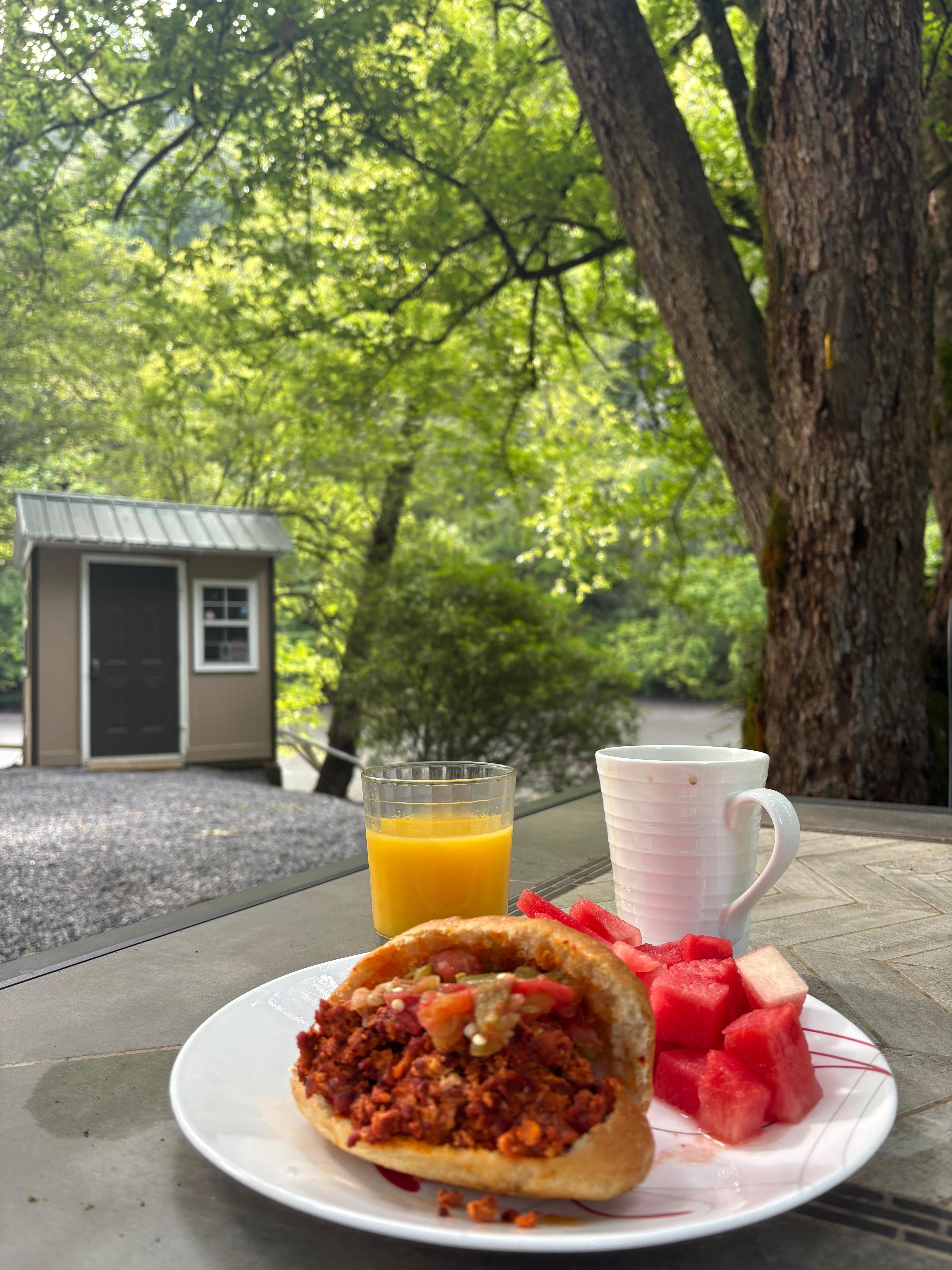 OUTDOOR SPACE: Expansive outdoor area, riverfront dining, gas grill, wood-burning fire pit w/ seating, hammock, yard games