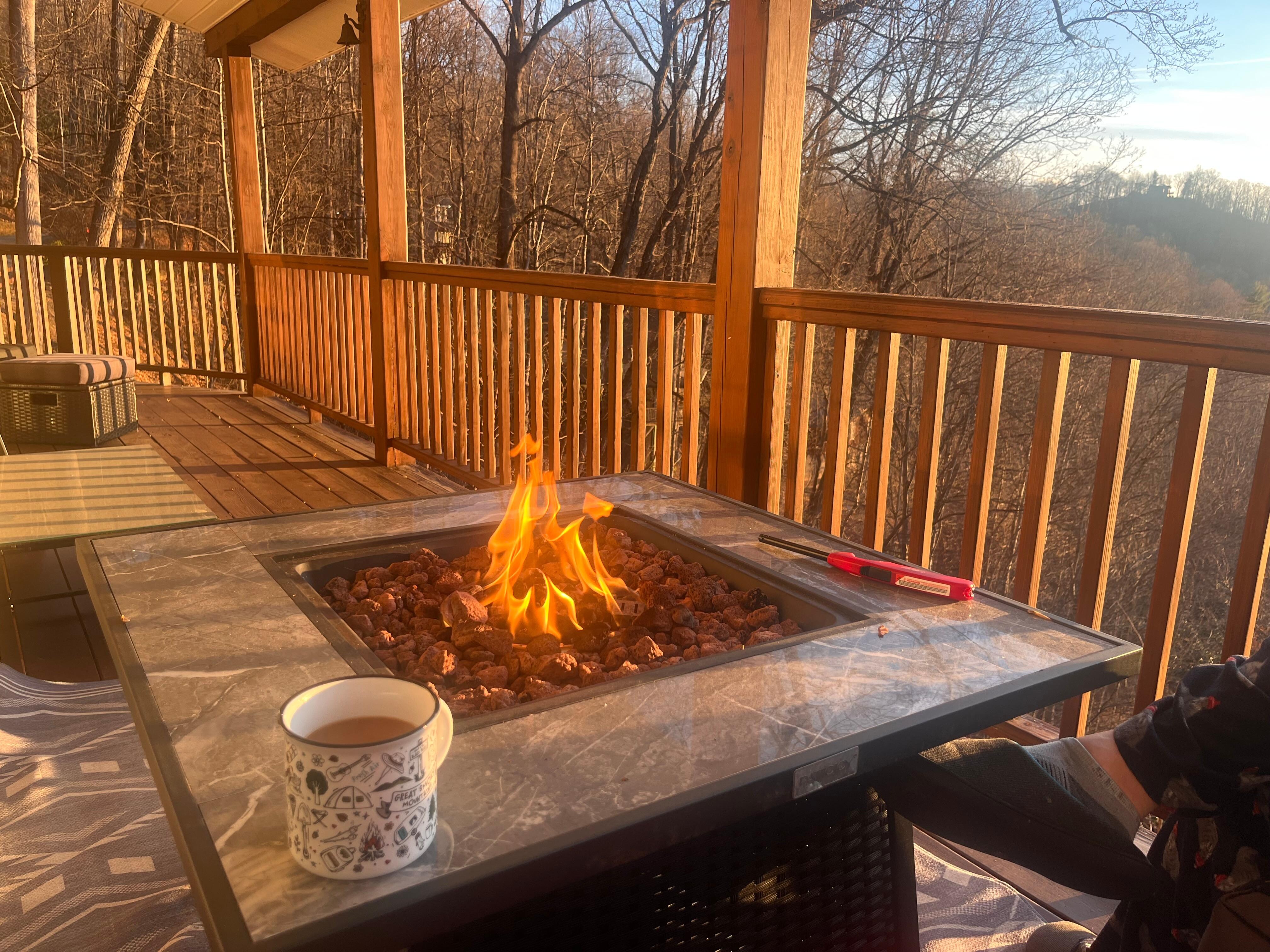 - Furnished deck, fire table
