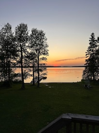 The large screened in porch is perfect for sipping your morning coffee or storm watching on rainy days. Spend your afternoon taking a dip in the lake from the sandy beach, soaking in some sun on the dock, or playing lawn games. Finish the day by enjoying the best sunsets on the lake around the campfire.